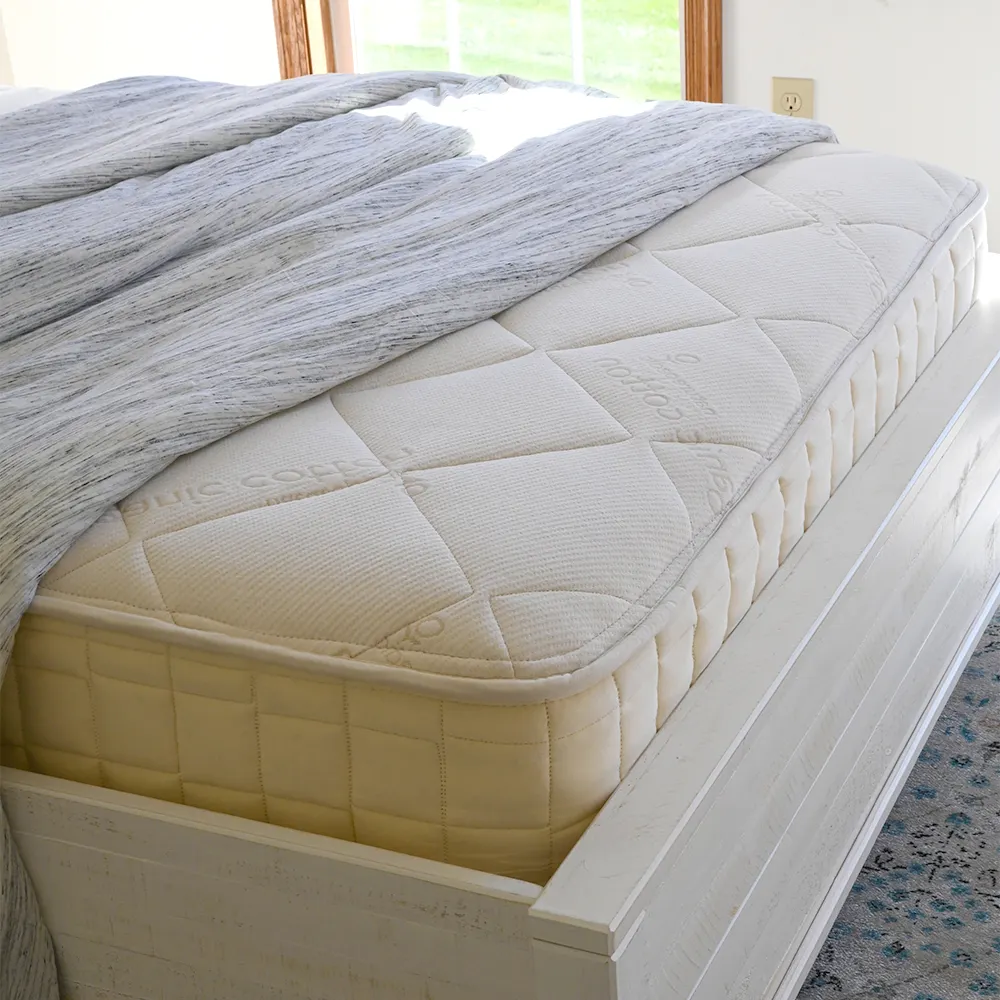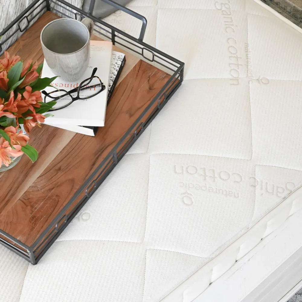 This mattress’s beauty lies in its uncompromising simplicity: multiple layers of organic cotton combined with a natural, breathable layer of wool and premium latex for seamless comfort. The 8-inch glueless encased coils are guaranteed never to use adhesive, and the mattress is made of only certified organic materials. This includes 100 percent GOTS-certified organic cotton, GOTS-certified wool, and GOTS-approved latex inside the Naturepedic Serenade, which is also free of flame retardants.